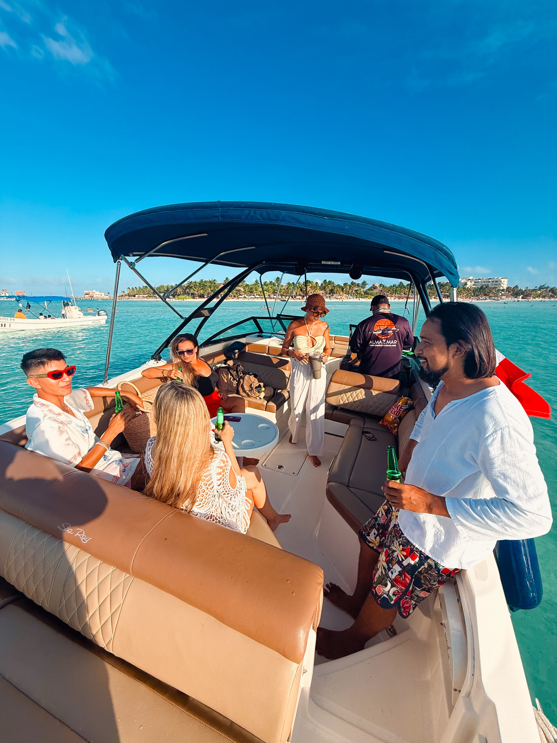 Experience an unforgettable day in Isla Mujeres with our private morning tour. Our exclusive luxury Sea Ray Sundeck boat will take you through the crystal-clear waters of the Caribbean, offering a unique and relaxing experience.